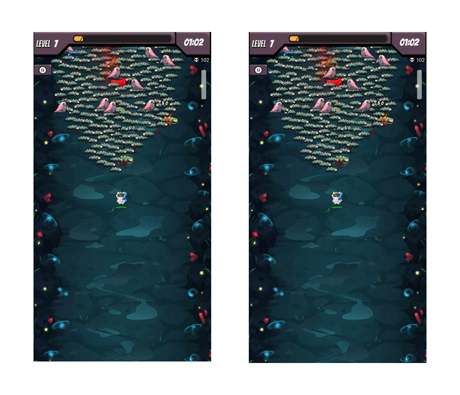 Players can move the character by swiping the screen. In StarSurvivor, they need to avoid damages from enemies or monsters, and to kill them with skills.